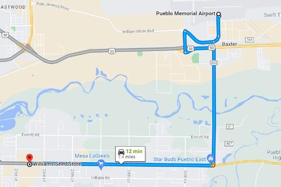 The Pueblo Memorial Airport is only 7.5 miles from the farm. The airport accommodates private jets and airplanes and offers a small selection of commercial flights to Denver International Airport.