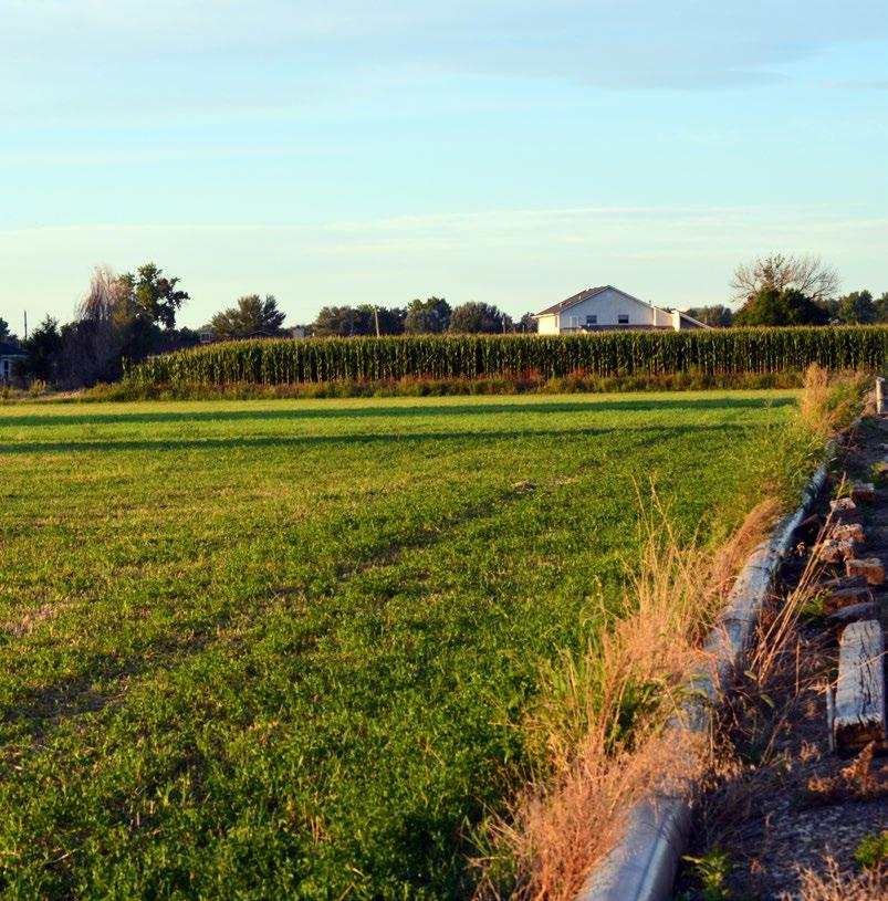 The farm fields create a buffer around the home, seed store, and equipment shop. This setting helps the Williams Seed Store stand out as you drive by on US Highway 50. The return ditch for the irrigation water also creates a tranquil live water feature as these waters flow through the property.