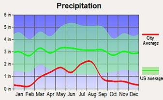The area between Pueblo and Avondale typically receives 12 inches of rain annually, along with 25 inches of snow. The summer high generally is 93 degrees, and the winter low is 17 degrees. On average, the sun shines 258 days per year. This area is rated as one of the most comfortable climates in Colorado.
