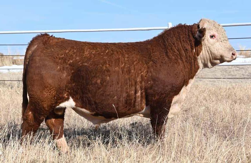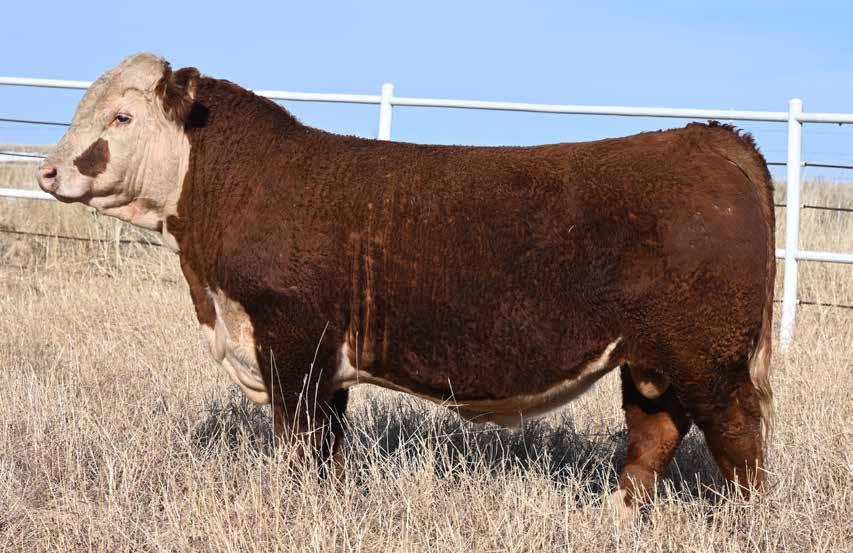 • Loaded with meat and muscle, this bull’s wide base and powerful look make him an eye catcher.