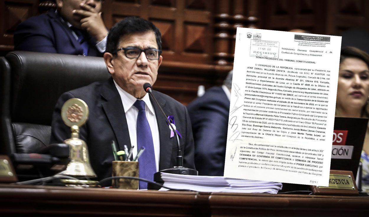 El presidente del Congreso, José Williams, presentó esta tarde ante el Tribunal Constitucional (TC) la demanda competencial y la medida cautelar contra el Poder Ejecutivo, con el fin de bloquear un posible cierre tras la reciente interpretación del presidente Pedro Castillo, quien asumió como denegada la primera cuestión de confianza.