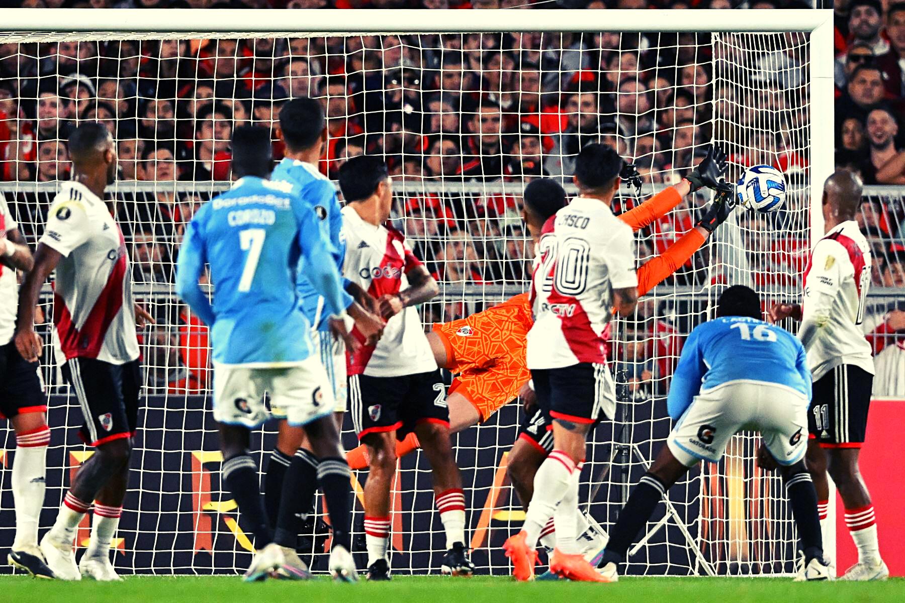 ol 'celeste' lo anotó el delantero Ignacio on potente golpe de cabeza desde el área, tras un servicio de tiro libre en el 0 del primer tiempo. Sorprendido con adrugador' de la visita, River se lanzó al busca de la igualdad, la cual llegó en el Nicolás de la Cruz recibió un centro a en el borde del área chica y conectó e cabeza, para dejar sin chances a Solís.