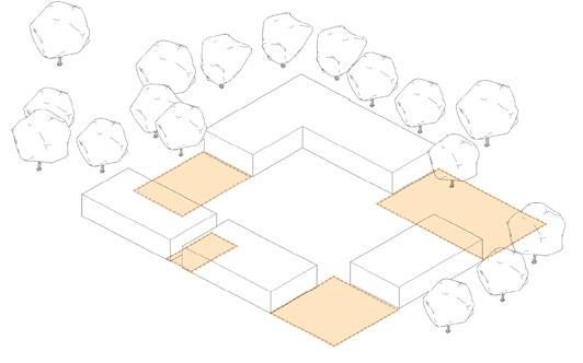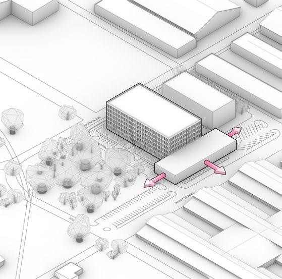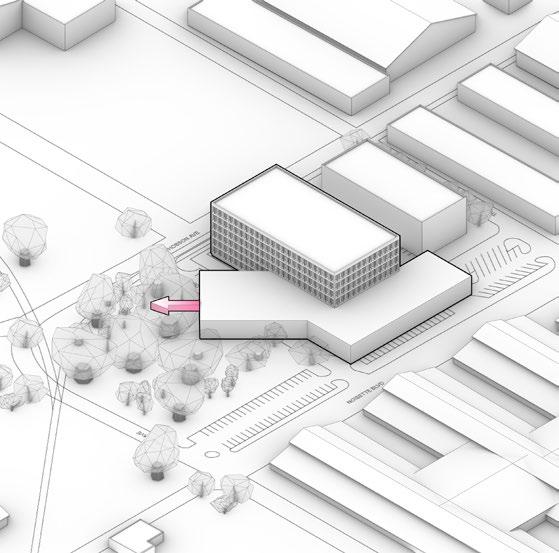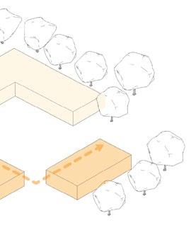 Extrude north into existing green space to engage the park and building in an active dialogue