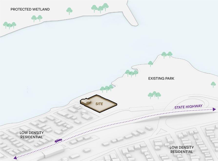 Brownfield site with abandoned boat workshop, adjacent to existing Gibson Park