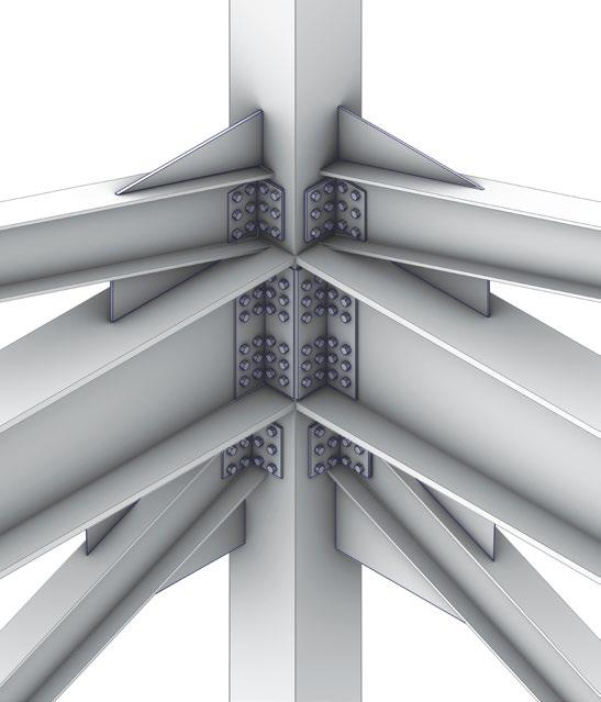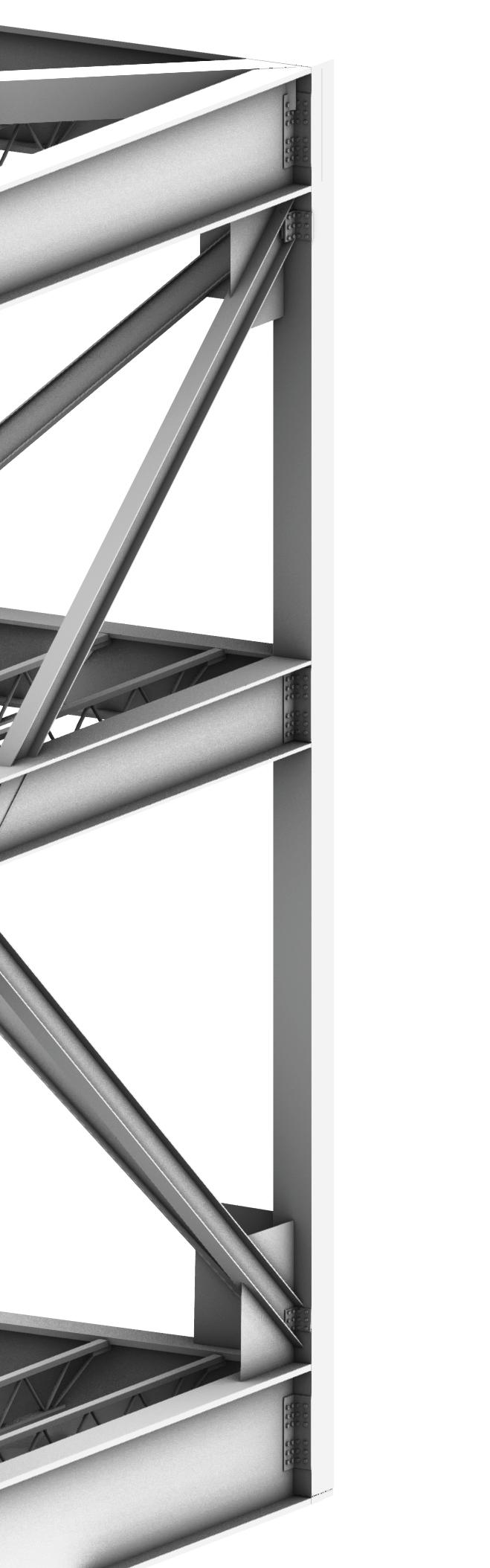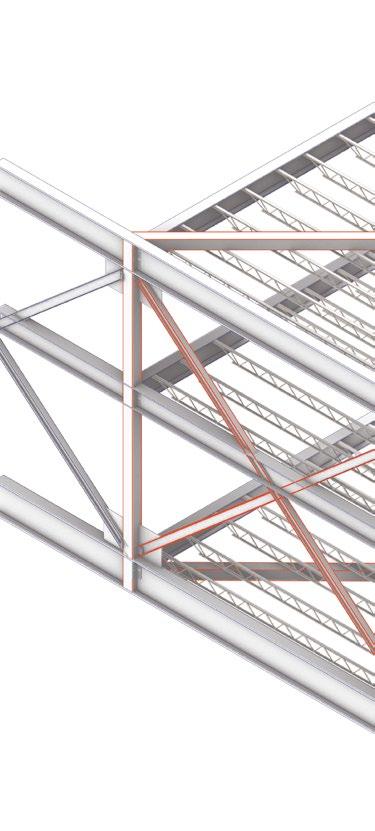 WWF beams, HSS cross-bracing and columns, K-series joists
