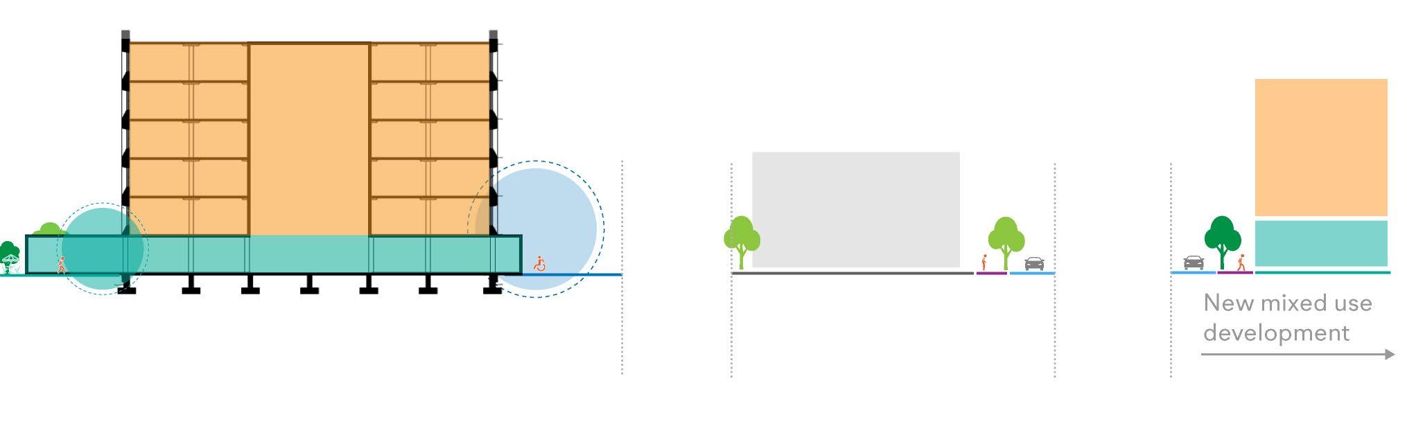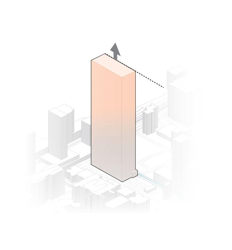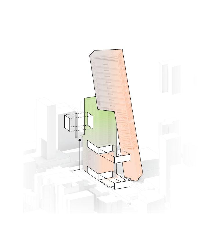 Scale the massing down toward the park and street front, in order to create public and private terraces and elevated green spaces