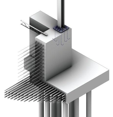 Pile foundation with heavily reinforced concrete footer and bolted steel superstructure