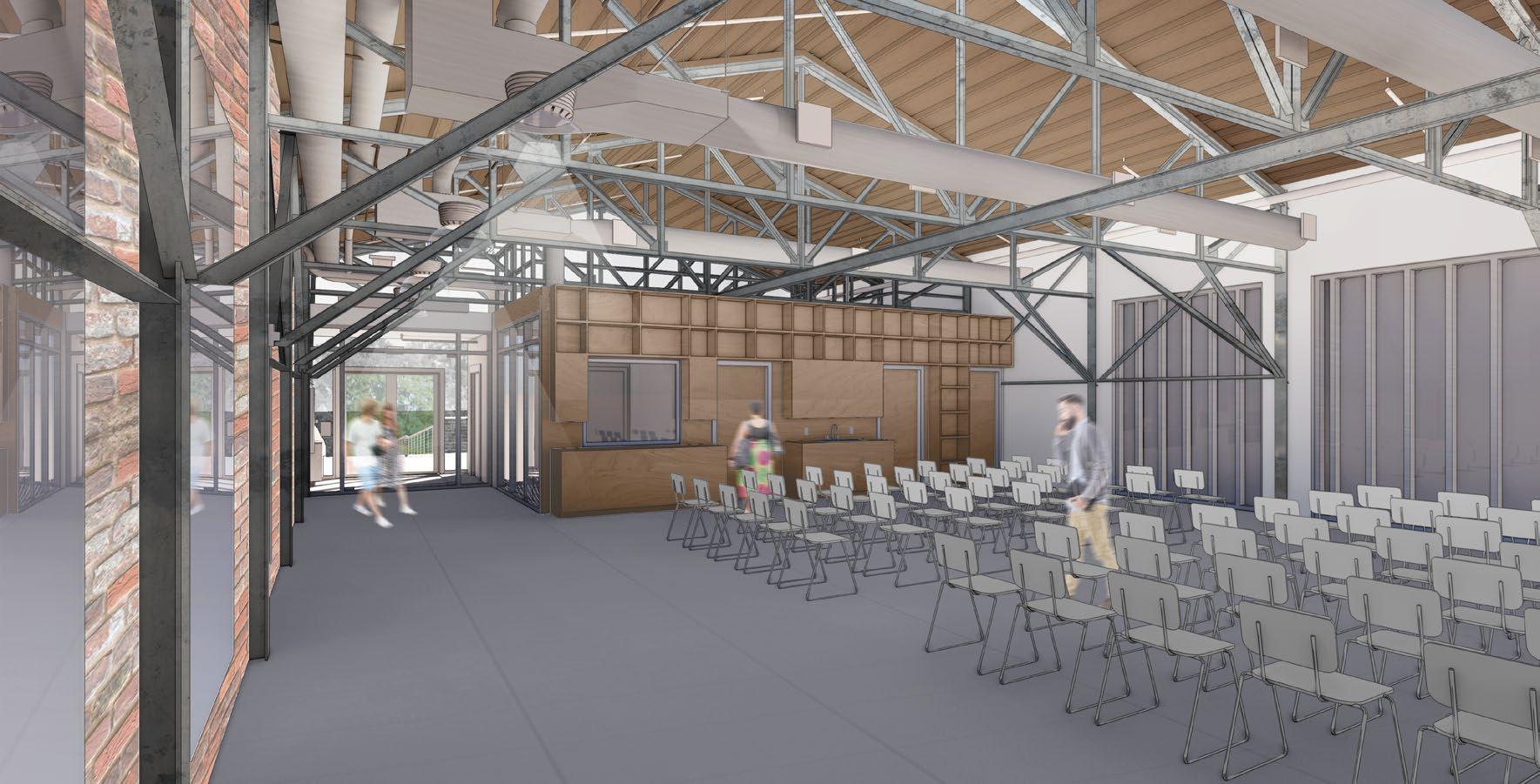 Remove existing brutalist facade on northern face and re-skin with glass curtain wall to improve daylighting and visual connections to park