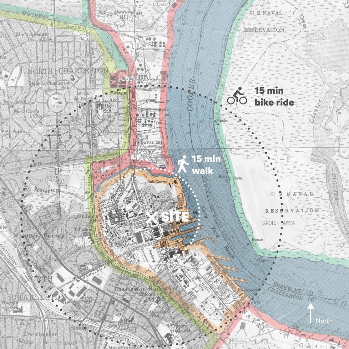 Originally a 600 acre, Olmstead designed public park, the North Charleston Navy Shipyard boasted the largest pier and dry dock on the east coast prior to World War I. For almost 100 years, the Naval Yard bolstered the economic development of North Charleston. Since the decommissioning of the base in 1996, North Charleston has stumbled, but grown, despite crime, loss of industry, and the neglect of the Navy Base. In an effort to revitalize, the decommissioned Navy Base is being re-imagined as a new urbanist community, focused on the creation of a vibrant, contemporary, sustainable, and livable community. Civic Asset is an exploration in urban interventions, creating sensitive and thoughtful solutions for new communities through adaptive reuse projects and the creation of civic commons using culture and civic assets as an anchor.