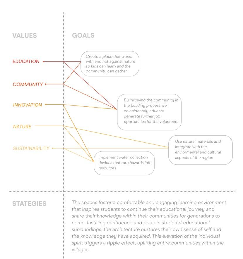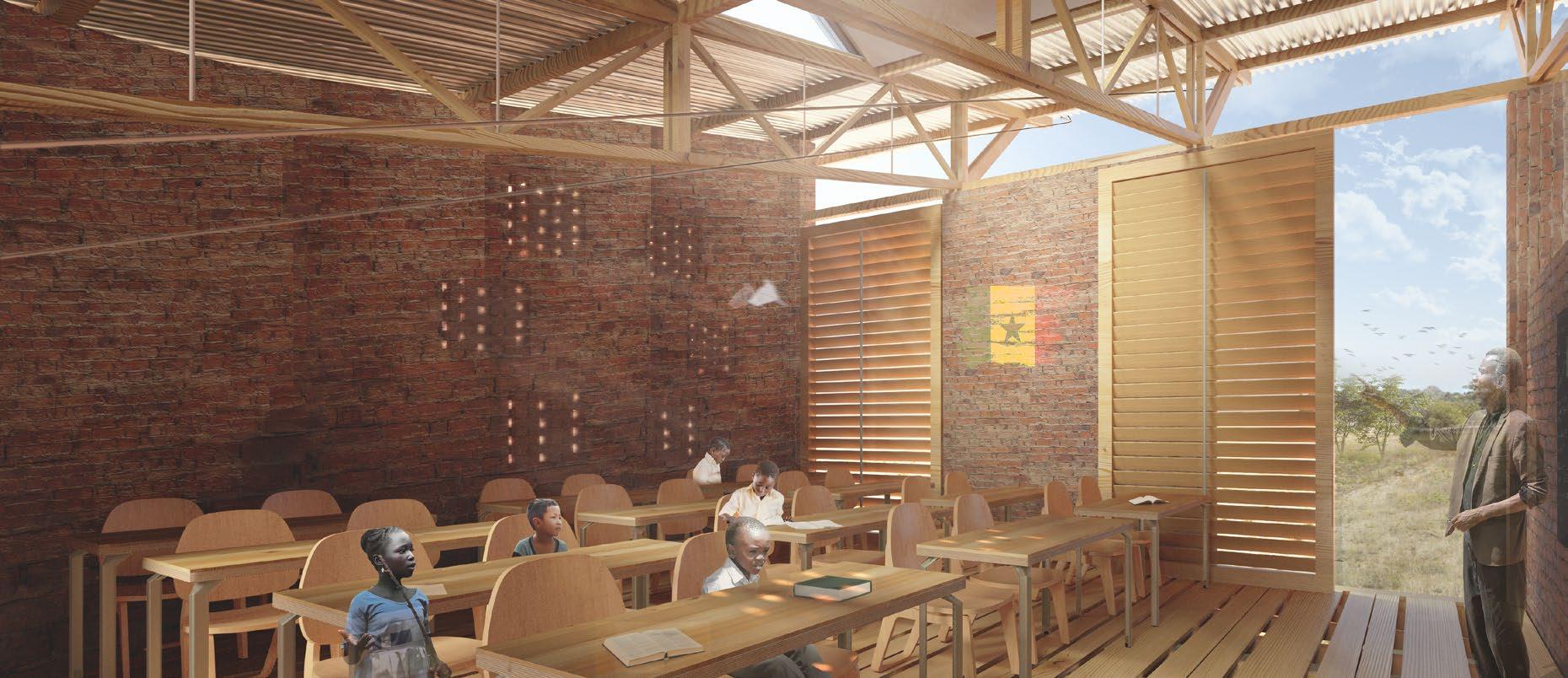The architecture seeks to create spaces for enlightenment of the highest order as brick and mortar are transformed into a vehicle for self-improvement. Our design seeks to strike a delicate balance between providing focused indoor learning environments while maintaining a connection to the reality of the students’ communities. By carefully designing learning spaces that engage students’ attention inward, while allowing them to embrace the vibrancy of their surroundings, we aim to create a holistic educational experience. Through intuitive variations of vernacular building patterns, the project serves as an introduction to resilient and sustainable building practices, hoping to educate and inspire implementation across the region.