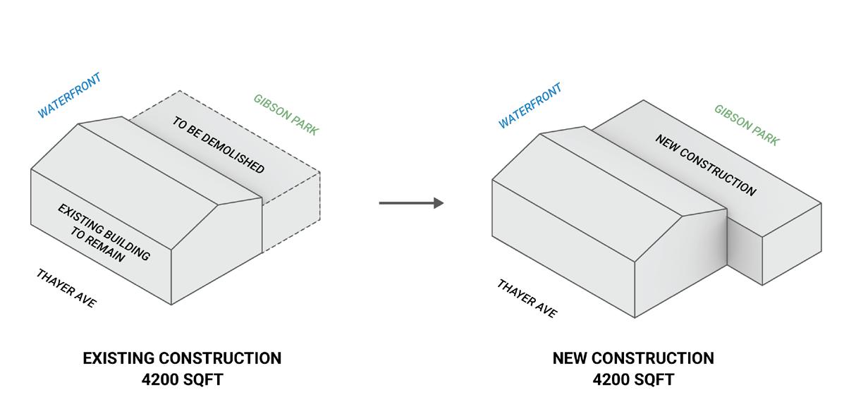 Revitalization of a community building within a larger municipal park redevelopment scheme. The architecture seeks to coexist harmoniously within its riverside residential context, while providing public access to waterfront recreation.