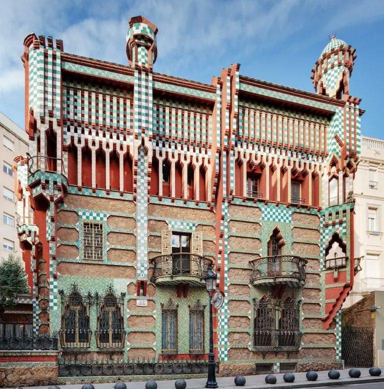 The Casa Vicens is located in Gracia, a neighborhood to the northwest of the city center of Barcelona and was designed and built between 18831888. Antoni Gaudi was commissioned to design a summer residence for a tile manufacturer, Manel Vicens y Montaner. When Gaudi received this project, he saw it as an opportunity to show the world what a truly Catalan architecture would look like. To many peoples surprise he chose to include almost exclusively architectural elements from the Middle East. This decision becomes one of the most important in modern Spanish Architecture and continues to affect style in the region.