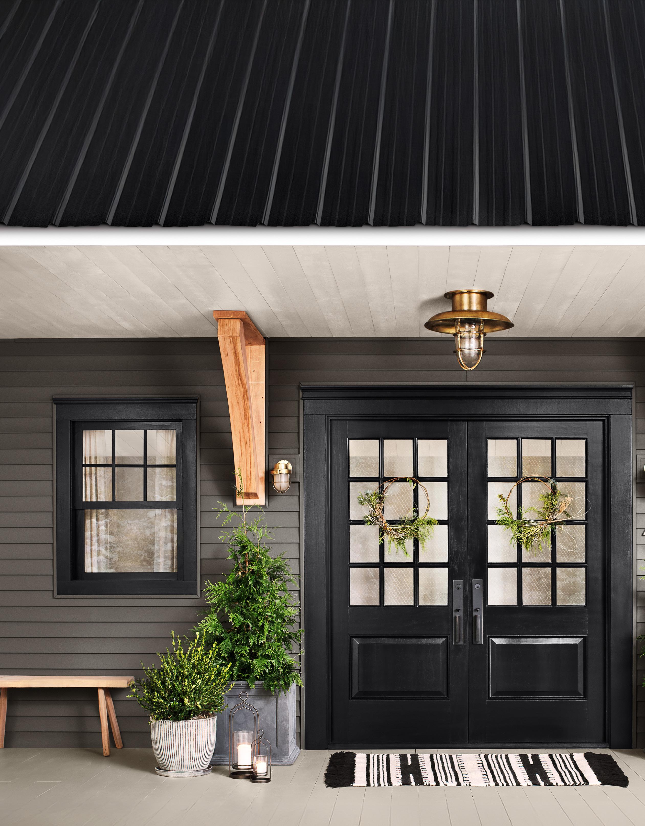 “When we think of neutral colors, we think of whites, but black is still a neutral, too. It’s just a very unexpected neutral, which makes it feel modern and fresh,” Banbury says. “ Tricorn Black (SW 6258) is one of our top exterior colors. But we’re starting to also see the dark blacks 3