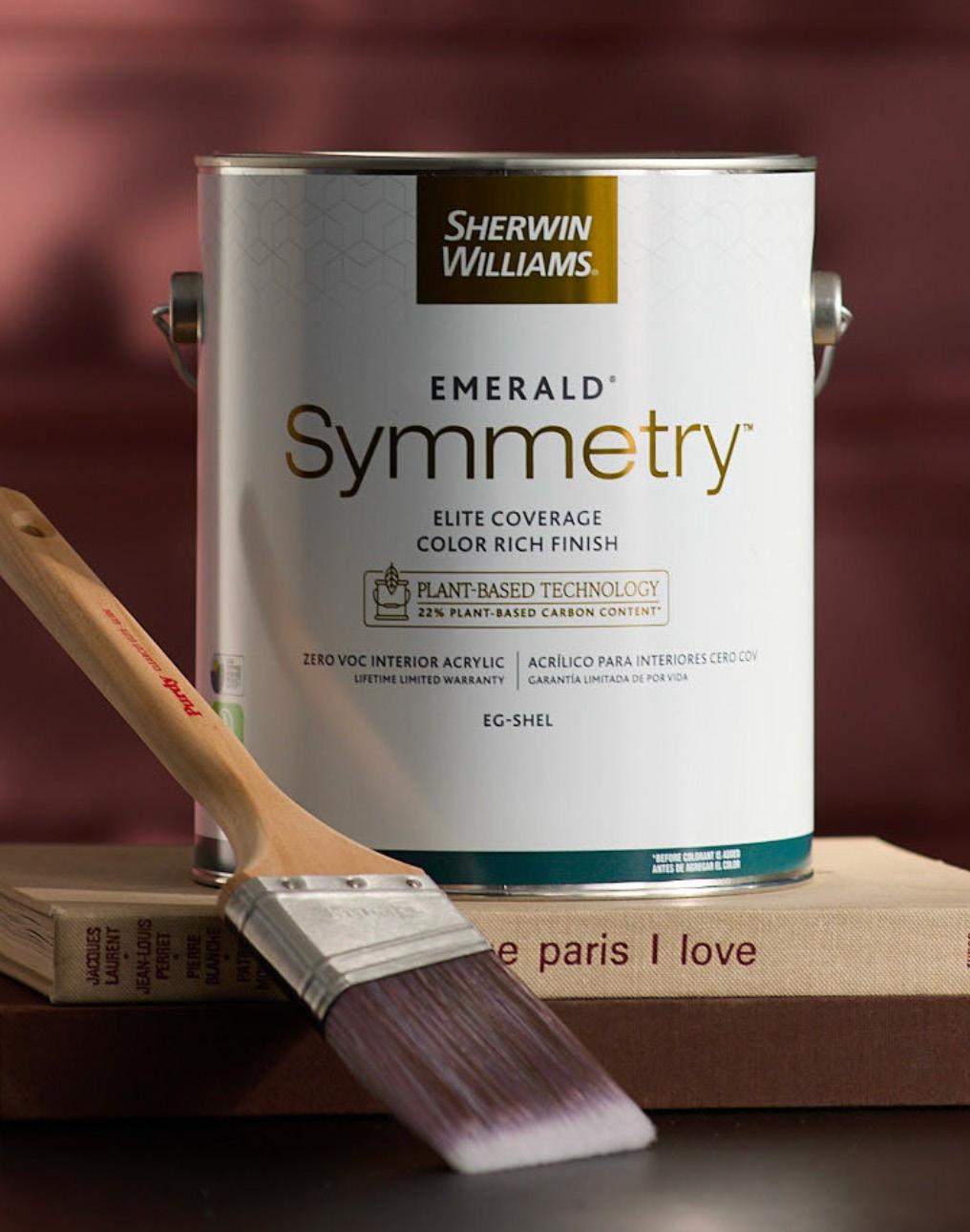 formula. Think of it as high performance and mindful innovation balanced perfectly in one product. Emerald Symmetry Zero-VOCS Interior Acrylic is equal parts performance and sustainability, something that is reflected in the product name – the word “symmetry” describes the property of having parts that are identical and arranged in a balanced way.