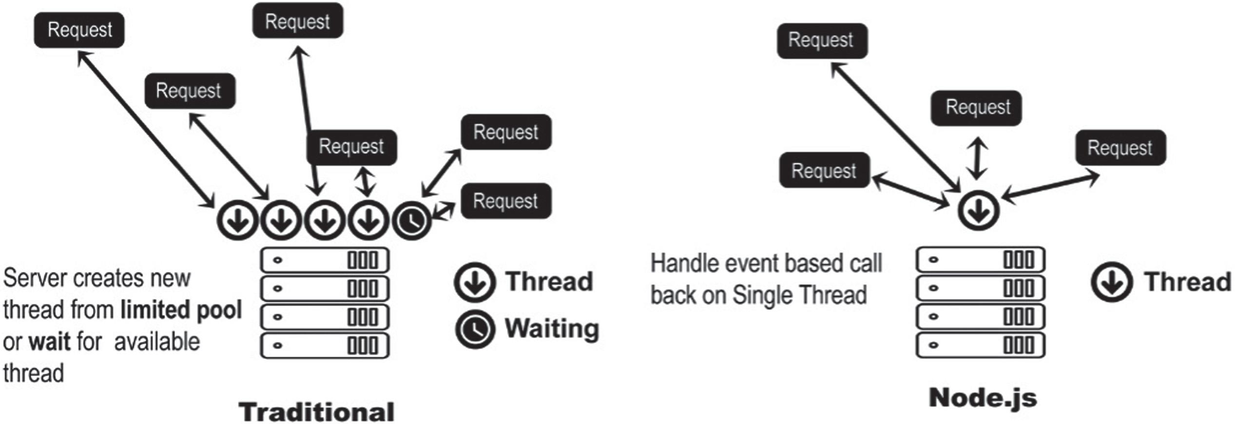 TheOSrunstheI/Oinparallelandsendsthedatatosingle-threadedJS.Ourcode consistsofsmallportionsofsynchronousblocksthatrunfastandpassthedatatofiles andstreams.SoourJavaScriptcodedoesnotblocktheexecutionofotherpiecesof JavaScript.AlotmoretimeisspentwaitingforI/OeventstohappenthanJavaScript codebeingexecuted.NGMRNode.jsframeworkjustinvokesthefunctionsanddoes notblocktheexecutionofotherpiecesofcode.Itwillgetnotifiedthroughthecallback