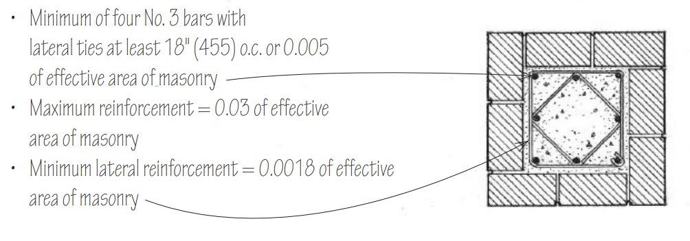 Different brick bonding in my building 1:5 Column detail Detail Vertical core of portland cement grout vertical reinforcement bars (extend down and are tied to dowels embedded in column footing lateral ties) 1:15 Column detail Detail information from Metric Handbook: Planning and Design Data, Third Edition12 Building
