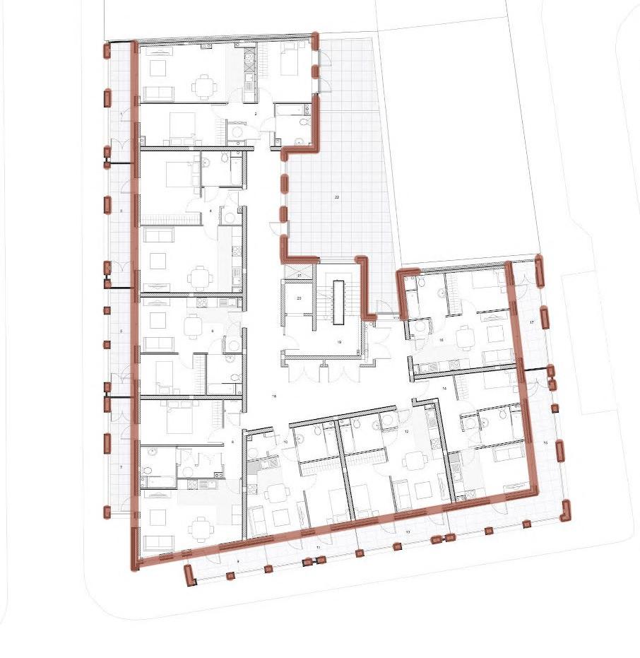 The layout ensures that residents have access to outdoor areas and ample natural light, which contributes to their well-being. The architects worked closely with the care home operators to align the architecture with the care concept, resulting in a home that supports the individual needs of residents while promoting a sense of community and security. The project was part of a shift in the field of inpatient care for the elderly, emphasising residents’ autonomy and quality of life within a group living environment.