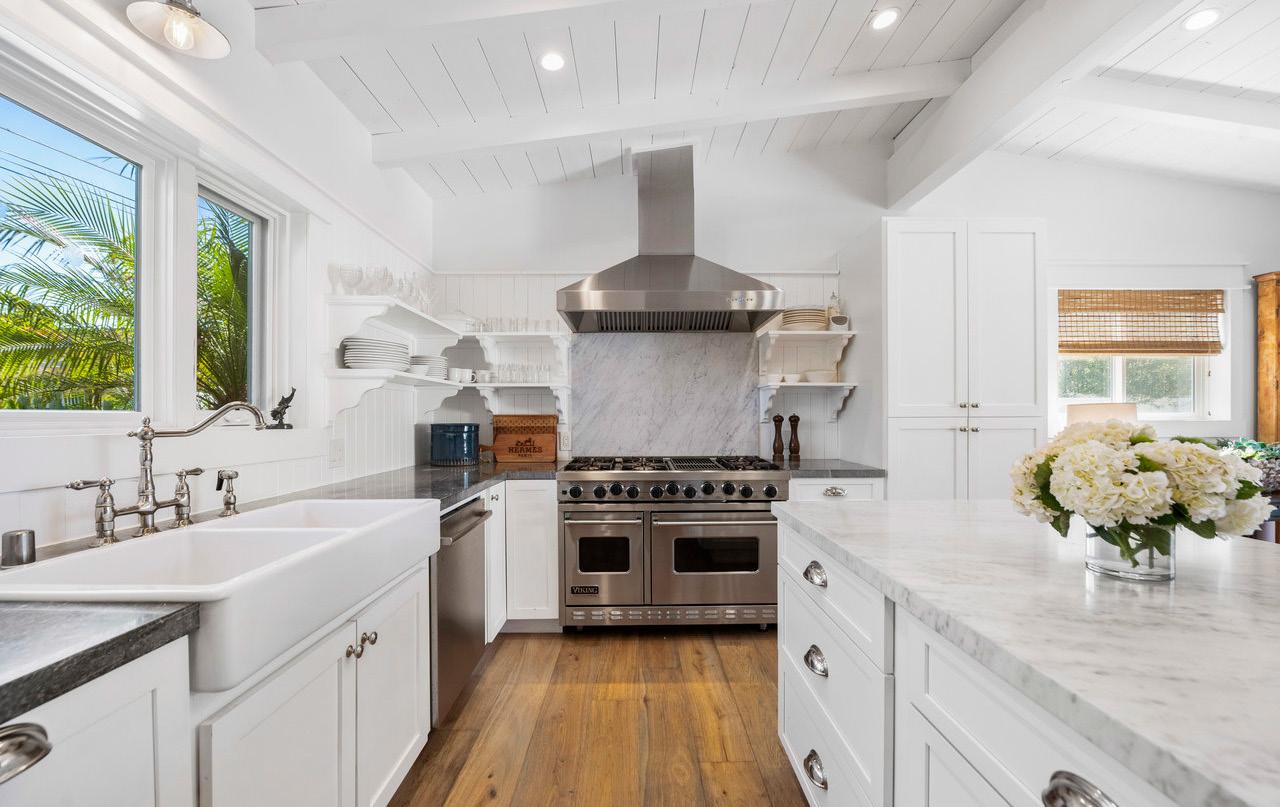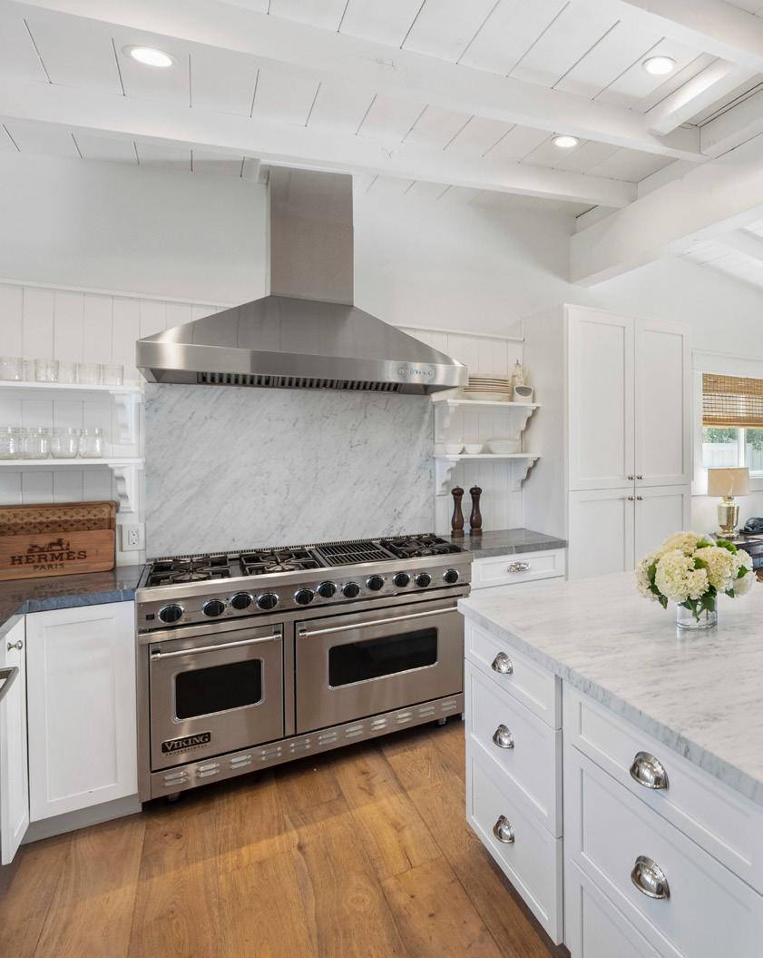 It’s hard to find a place more suited for relaxation than this casually confident house. The kitchen and dining room ooze OG cottage charm; There’s a farmhouse sink, Viking 60-inch range, a stone island and granite countertops.