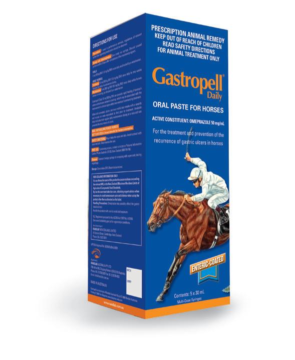 Gastropell Forte has been shown to be effective in high performance horses (specific APVMA registration). It is also the product of choice in chronic, recurrent or severe gastric ulcers or whenever rapid resolution of gastric ulceration is required.