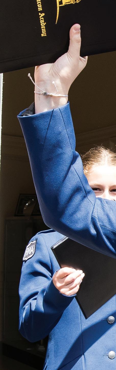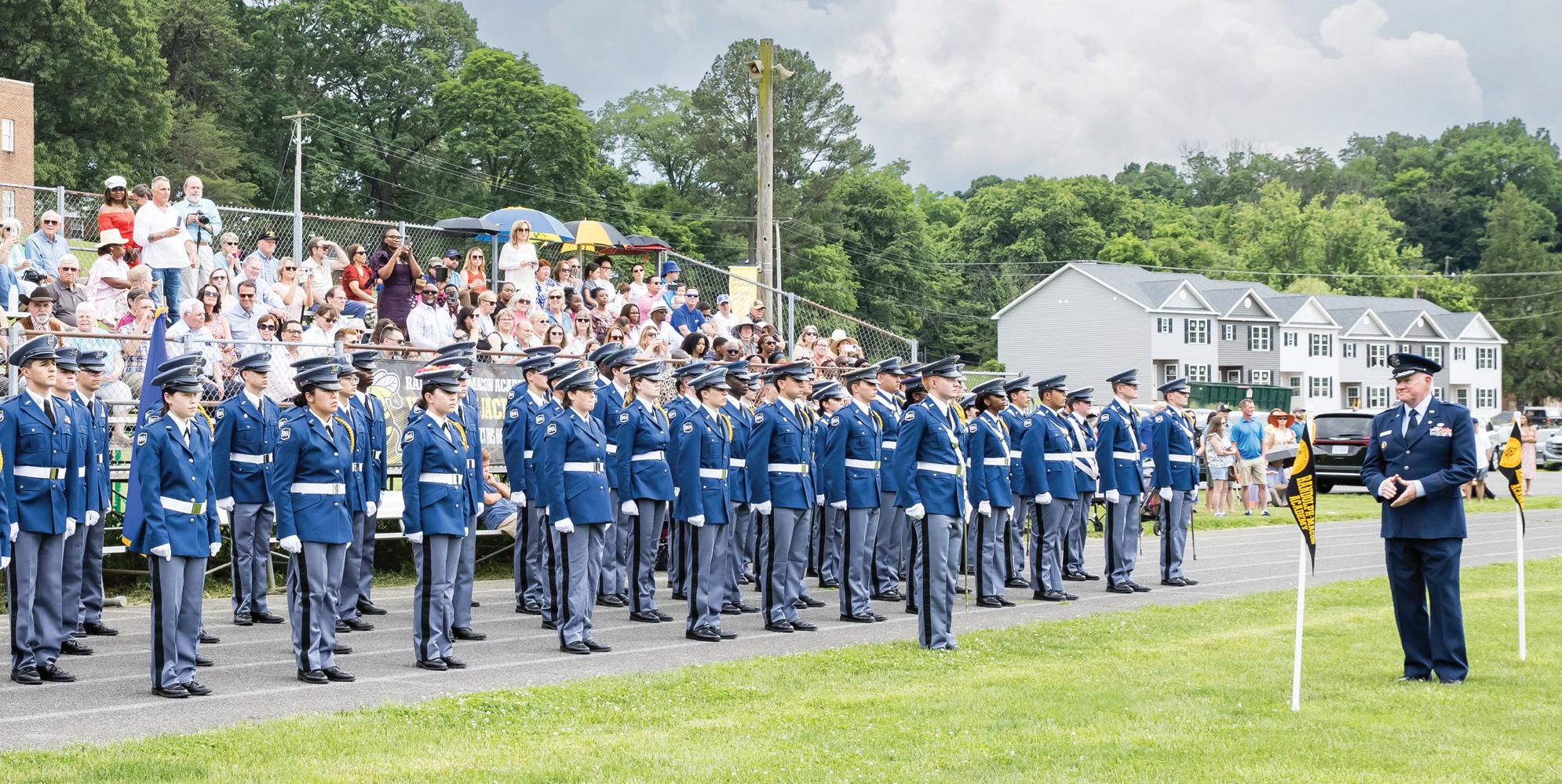 Another remarkable academic year, the Academy’s 132nd, has ended in triumph, with the Class of 2024 securing $16M+ in scholarship offers, taking their place as our 17th consecutive class with 100% college acceptance! We placed two cadets at West Point and two at USAFA’s Prep School, along with nine Falcon Scholars who’re headed to Colorado Springs as well! Acceptances to UVA (5) and Virginia Tech (9) brought joy to parents’ faces at Graduation, along with those at William and Mary, Purdue, Texas A&M, The Citadel, VMI, NYU, Boston University, several acceptances in the California system, Georgia Tech, and many other great colleges and universities (see pages 12-14 to learn all about this year’s graduation celebration).