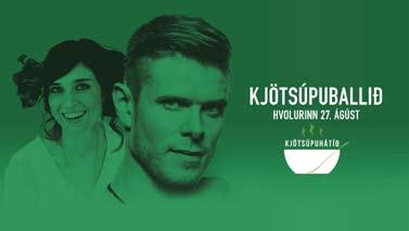 LaU ga RDag UR Kl. 10:00 - Naflahlaupið við Midgard Kl. 12:00 - Markaður opnar Kl. 12:30 - Súpa frá SS Kl. 13:00 - Barnaskemmtun á hátíðarsvæði - Bmx Bros ásamt fleiri atriðum Kl. 14:00 - hoppukastalar - loftbolti.is Kl. 15:00 - Vatnaboltaleikurinn Kl. 16:00 - Suðurlandsdjazz í Sveitabúðinni Unu Kl. 20:00 - Stórtónleikar á Hátíðarsvæðinu Kl. 22:15 - Brenna og flugeldasýning Kl. 22:30 - Stemning í tjaldinu fram að balli, trúbador og fleira. Kl. 23:00 - Dansleikur í Hvolnum - Jónsi & Unnur Birna ásamt hljómsveit F IMMt UDag UR: Kl. 17:00 - Silent diskó fyrir yngri kynslóðina á Midgard. Kl. 20:00 - Pétur Jóhann í Hvolnum. F ÖS t UDag UR Kl. 19:00 - Hið eina sanna Súpurölt. S UNNUDag UR 11:00 - Söguganga um Hvolsvöll 12:00 - LottaLeikhópurinn Kjötsúpuhátíð 2022 á Hvolsvelli 25.-28. ágúst