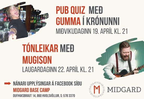 Menningarsal Hellu 30. apríl kl. 15:30 / Midgard Hvolsvelli 1. maí kl. 17:00