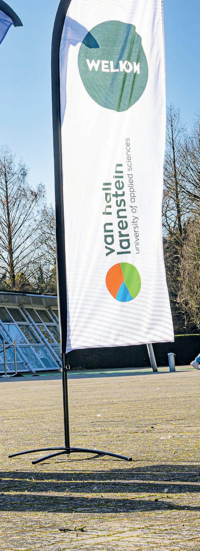 Jan: “Drie jaar geleden hebben we onderzoek gedaan: meer dan vijftig procent van de hbo- en universitaire afgestudeerden vertrekt uit de regio. Veel mensen weten niet welke fantastische bedrijven hier zitten.” Door studenten al tijdens hun studie kennis te laten maken met regionale organisaties, hopen de betrokken partijen talent te behouden. Jan: “Van Hall Larenstein is wereldwijd koploper op het gebied van waterstof en circulariteit, wist je dat? Zo’n zeventig procent van de bloemen en planten in Nederland is terug te vinden hier in de tuin van de hogeschool.”