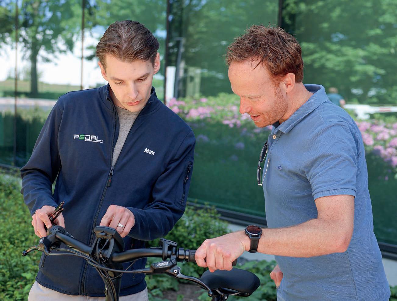 Op de aftrapdag van de leasefietsregeling is ook buurbedrijf Pedal aanwezig. De fietsenhandelaar heeft een heel assortiment (E)-bikes meegebracht die medewerkers ter plekke mogen proberen.