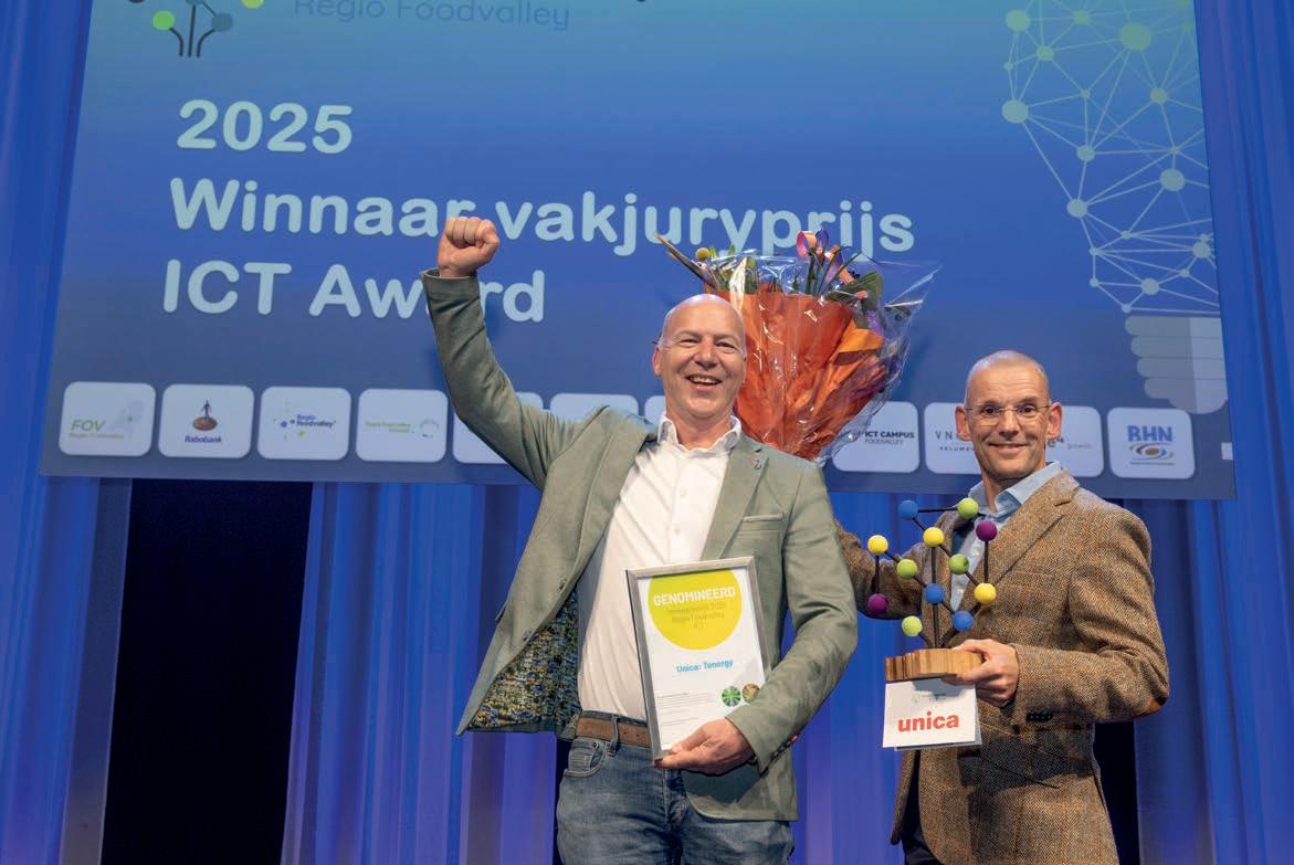 AgroCares uit Wageningen won met het mobiele testlaboratorium LeafCares de vakjuryprijs in de categorie agrifood. Unica uit Hoevelaken won met het slimme energieplatform Tenergy in de