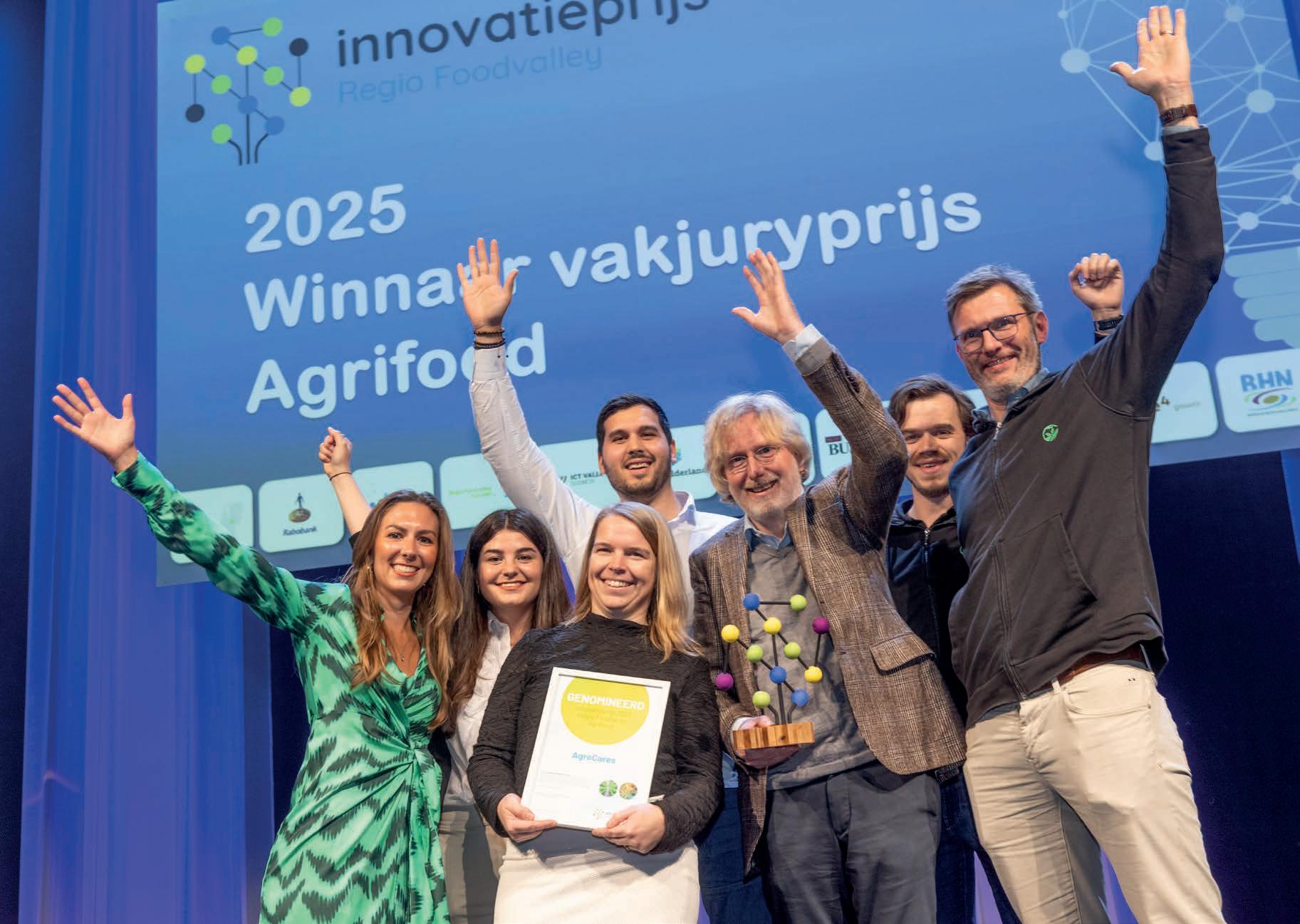 Innovatieve ondernemers uit Wageningen, Hoevelaken, Veenendaal en Rhenen hebben woensdagavond 29 oktober in een vol Hart van Holland in Nijkerk de Innovatieprijs Regio Foodvalley 2025, vijfde editie, gewonnen voor hun slimme oplossingen voor de zorg, het energienet en de voedselteelt.
