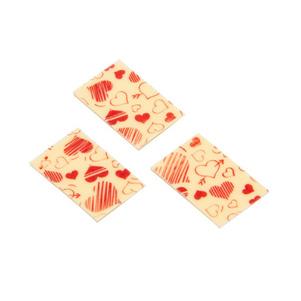 600410 Mini curlies - Coeurschocolat blanc3 x 4,5 x H4,5cm 105 pcs. 600888 Rectangle - Cœurschocolat blanc4 x 2,5 cm 325 pcs. 600977 3D Heartschocolat blancØ 3,5 x H0,5 cm 180 pcs.