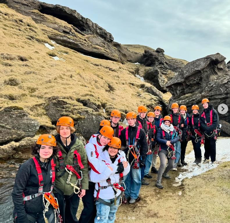 The comming day we explored an ice cave with a tour guide and finished the day by setting up our cabins and enjoying pizza The Last day before returning to Reykavik was spent whale watching in Hauganes On the way back to Reykavik the following day we spotted seals and explored Reykjavík