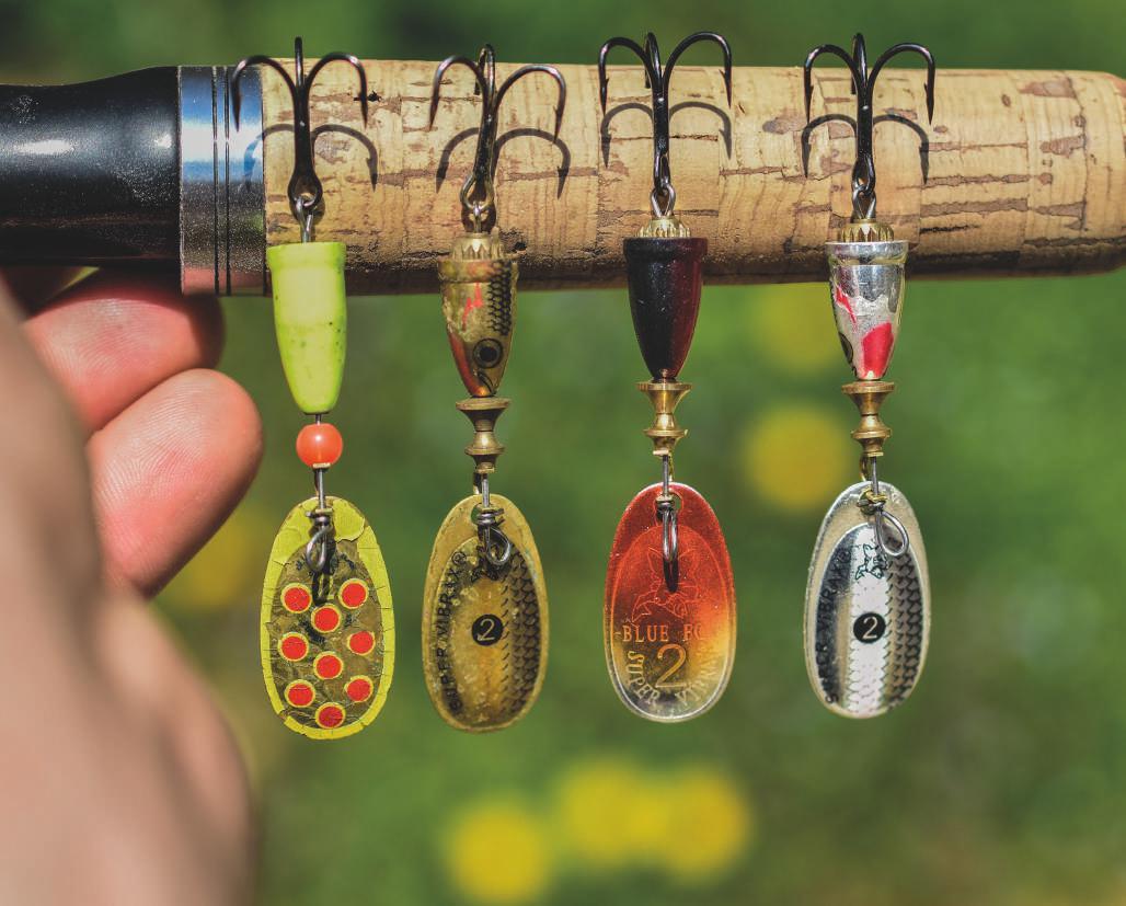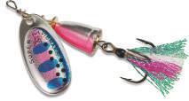 BF2S-BF2G-BFS2BYY - Silver, Gold, Black / Yellow; BFS2 SYB-SYR-GYR - Silver / Yellow / Black, Silver / Yellow / Red, Gold / Yellow / Red; BYY-S-RT - Black / Yellow, Silver, Rainbow Trout; OCW-S-P - Orange Tiger, Silver, Perch; RT - Rainbow Trout