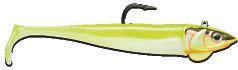 Built to imitate a prominent saltwater prey, Biscay Sandeel features a long, slender body and a perfectly matched head with a fixed hook. An additional chin eyelet gives the option of adding an assist hook or blade. This weighted head & body combination allows you to cast further in windy coastal conditions, and fish faster in rough water or when an aggressive presentation is needed. The subtle paddle tail kicks with a life-like action and incredible vibration, even at slow speeds. Both body sizes are available in two options; lighter head for cast and retrieve techniques and a heavier head option designed for vertical jigging even in strong currents. Every Biscay Sandeel is extremely visually detailed with each body perfectly color matched to its own jig head. Rigged with a heavy duty VMC® hook. Head includes eyelet to add optional stinger hook.