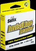 Invisiline is a leader material made from 100% fluorocarbon that offers incredible abrasion resistance and shock absorption. Due to its light refraction properties it is virtually invisible in water and sinks four times faster than standard nylon line. Invisline has incredibly low stretch and is highly durable making it the perfect choice for the most demanding fishing situations.