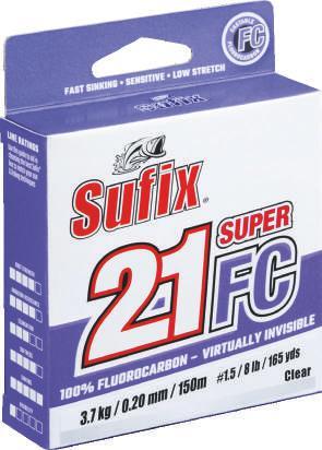 Polyvinylidene fluoride with high specific gravity for fast sinking. Near zero reflection under the water makes the line nearly invisible to the fish.