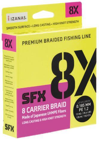 Made of Japanese UHMPE Fibers Long Casting & High Knot Strength. An eight carrier premium braided fishing line made with 100% Japanese UHMPE fibers for smooth surface that results in long casts and quiet performance in the line guides. High knot strength combined with super low stretch offer superior handling performance and sensitivity.