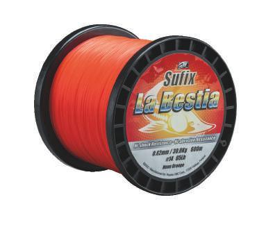Sufix La Bestia is a good choice for a rigorous monofilament line. It has high shock strength and a smooth outer surface, which makes it ideal for casting. Sufix La Bestia utilizes the latest in polymer technologies creating a very tough abrasion resistant low diameter line. Will work on both fixed spools and multipliers.