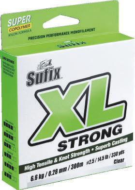 An exceptionally soft, smooth and supple fishing line with great tensile and knot strength. XL Strong is a very versatile monofilament fishing line that is perfect for a wide variety of fresh and salt water fishing applications. This smooth line is exceptional for casting by offering a low memory, reduced twisting, less kinks and fewer backlashes than stiffer monofilaments. Made with a super copolymer nylon formula, XL Strong offers increased toughness and excellent abrasion resistance. This low stretch nylon provides quick and controlled hook sets with high shock strength that helps you land more fish.
