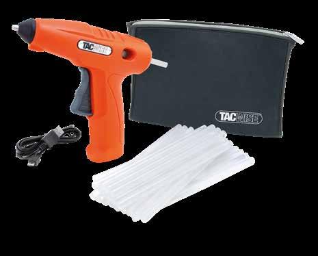 1780 Includes: Battery, UK mains charger, Euro plug adaptor, H12-7 glue gun, 30pcs glue sticks, storage bag