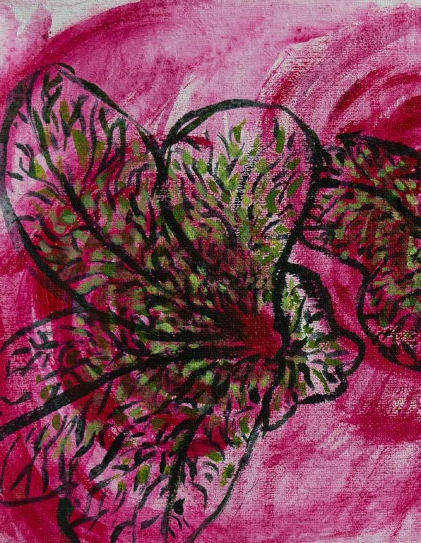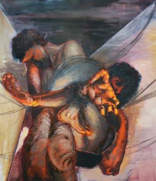 Así, si nos referimos al acto de pintar como un acto de adentrarse enen sí mismo desde lo exterior, lo que pretendo hacer con el gesto de pintar es buscar en los adentros del lienzo, de la luz, del color, o de la monstruosidad de las formas, una relación con un espíritu que, con una narrativa catábica, embellece su propio fallecimiento a través de una ficción curativa mediada por la recreación de mi ser en la pintura. En definitiva, lo que me interesa del acto de pintar es generar una analogía con el cuerpo para hablar de heridas metafísicas, heridas invisibles para el ojo carnoso, pero que se develan desde la oquedad, el vacío en la visión, el ojo espiritual. La interpretación del trauma como secreto-síntoma inyectado por el inevitable papel de la angustia en la cotidianidad es la oportunidad para sacralizar lo mórbido desde la espiritualidad en el arte, en este caso, en lo pictórico; simbolizarlo desde imágenes que muchas veces se producen en el inconsciente como aquella sombra que