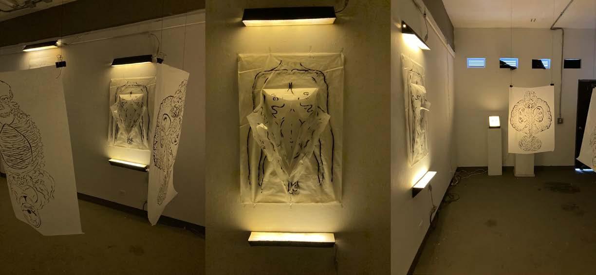 Como en la antigüedad clásica lo monstruoso era sinónimo de divinidad, se incorpora la angustia en la esfera del ser como si fuese el templo, en el cual, dejan marcadas las fauces de un inestable destino, de inefables pensamientos que convierten al cuerpo en la superficie de los miedos, pero también, de las verdades del mundo individual y colectivo; mi proyecto pone por caso la relación que construyo con mis miedos desde una mirada individual, pero con origen y consecuencias dentro de la esfera social en el que la linterna de lo moral ejerce su influencia diseccionando mi cuerpo con patologías que, considero, son monstruosas. Pensar, por ejemplo, en el desplazamiento y enraizamiento de mis extremidades como una imposibilidad de agarrar mi propio cuerpo, o el propio cuerpo del mundo, y así tantear el origen de las heridas, concede la imposibilidad de realizarse una sutura en la brecha del dolor.