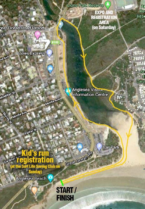 • RACE FINISH line for the 100km, 50km races (the start line is on the Anglesea Main Beach approx. 1km away)
