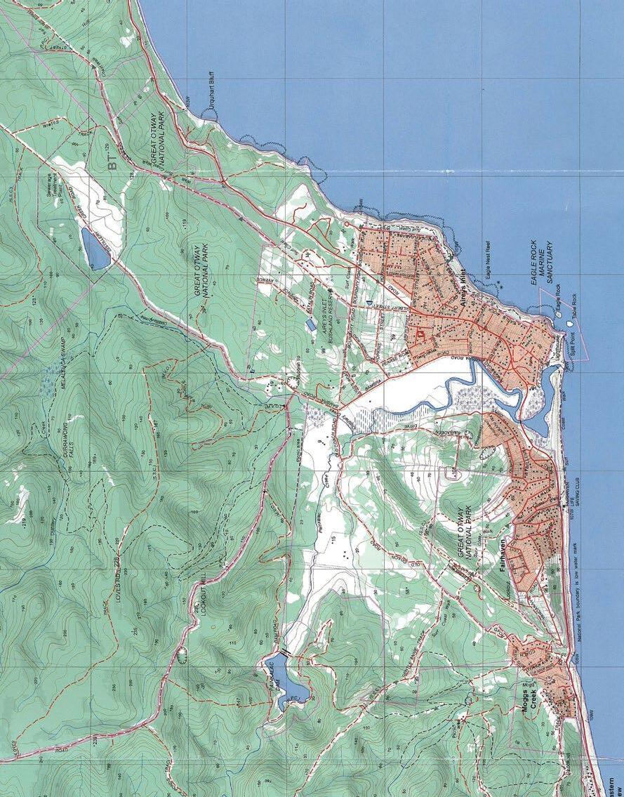 • Crossing Distillery Creek Rd behind Aireys Inlet, 58km point