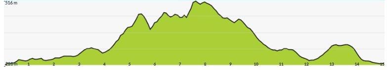 MEDIUM COURSE - 15.1KM Elevation gain/loss: 550m. Water Pts: 4km pt and 10.2km pts