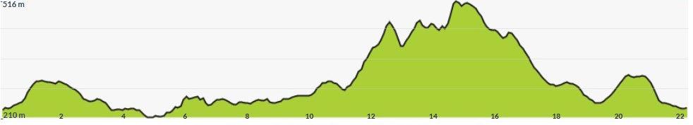 LONG COURSE - 22.3KM Elevation gain/loss: 700m. Water Pts: 11km pt and 17.3km pts