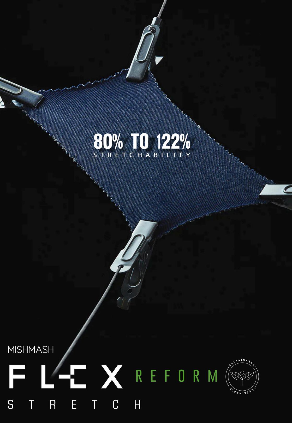 Combines shape defining elasticity for maximum comfort with holding power. Over half of our cotton comes from pre-or post-consumer waste which, together with recycled polyester, creates a super stretchy, resistant and sustainable denim