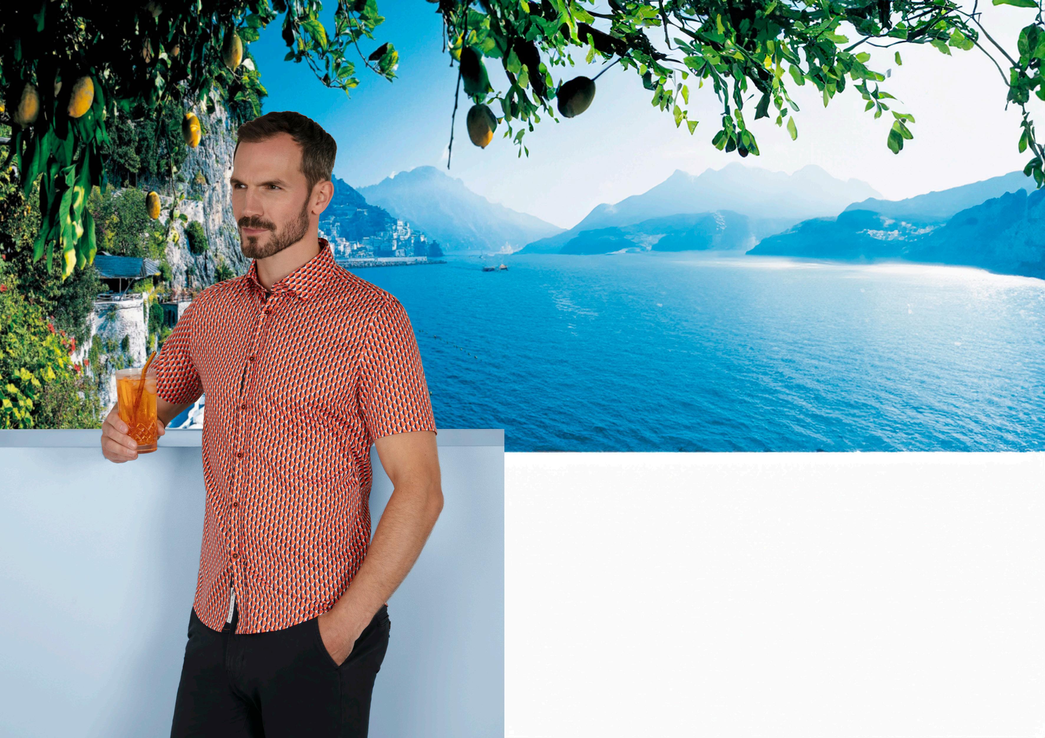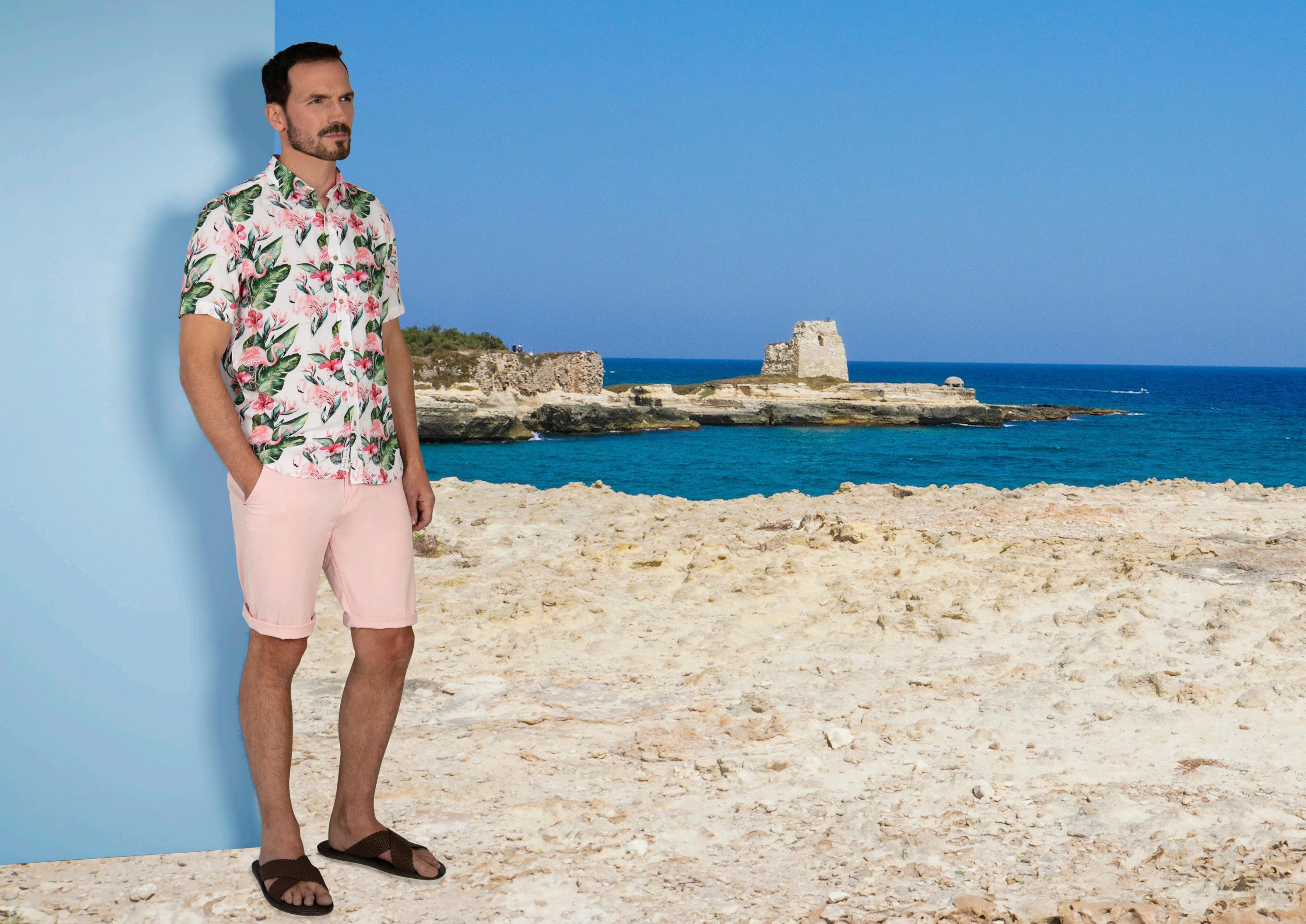 Indulge in the laid-back luxury of coastal living with "Riviera," a sophisticated men's summer fashion collection that draws inspiration from the sun-drenched shores of the Italian coast offering modern gentlemen a timeless wardrobe. The colour palette of "Riviera"is an exquisite fusion of aquatic blues, sunlit yellows, verdant greens, and sandy neutrals. The silhouettes strike the perfect balance between relaxed and refined, offering modern interpretations of classic menswear staples. Lightweight linen shirts, tailored shorts, and slim-fit chinos exude casual sophistication Structured blazers and lightweight knit sweaters add a touch of polish to evening ensembles, effortlessly transitioning from day to night.