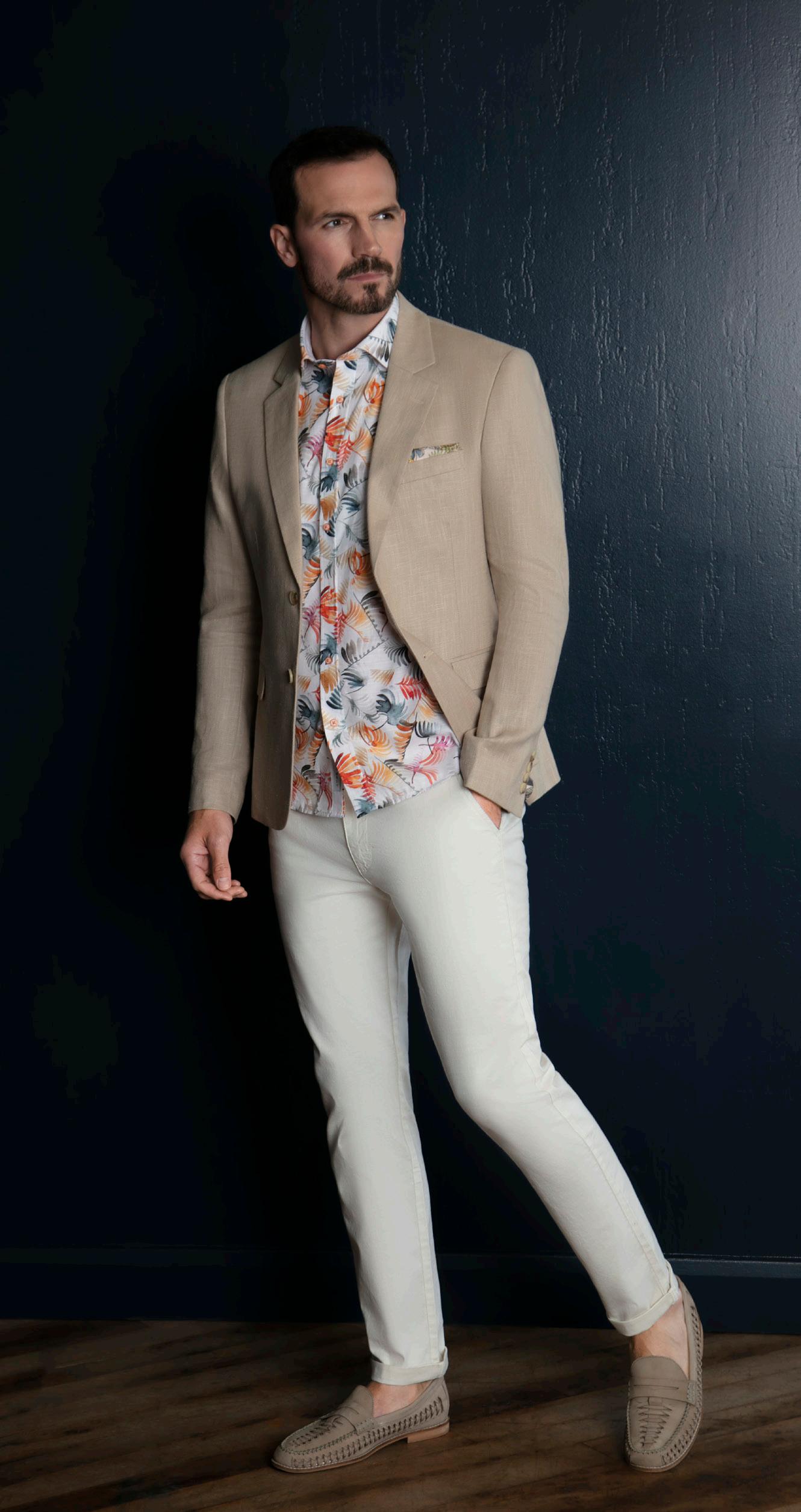Crafted from premium fabrics that prioritize comfort and style, elevates summer dressing to new heights of luxury. Breathable linens and cotton blends keep you cool and comfortable in the heat, while soft jersey knits, Viscose and lightweight wools offer versatility and ease of movement. Textured weaves and patterns add depth and visual interest to the collection.