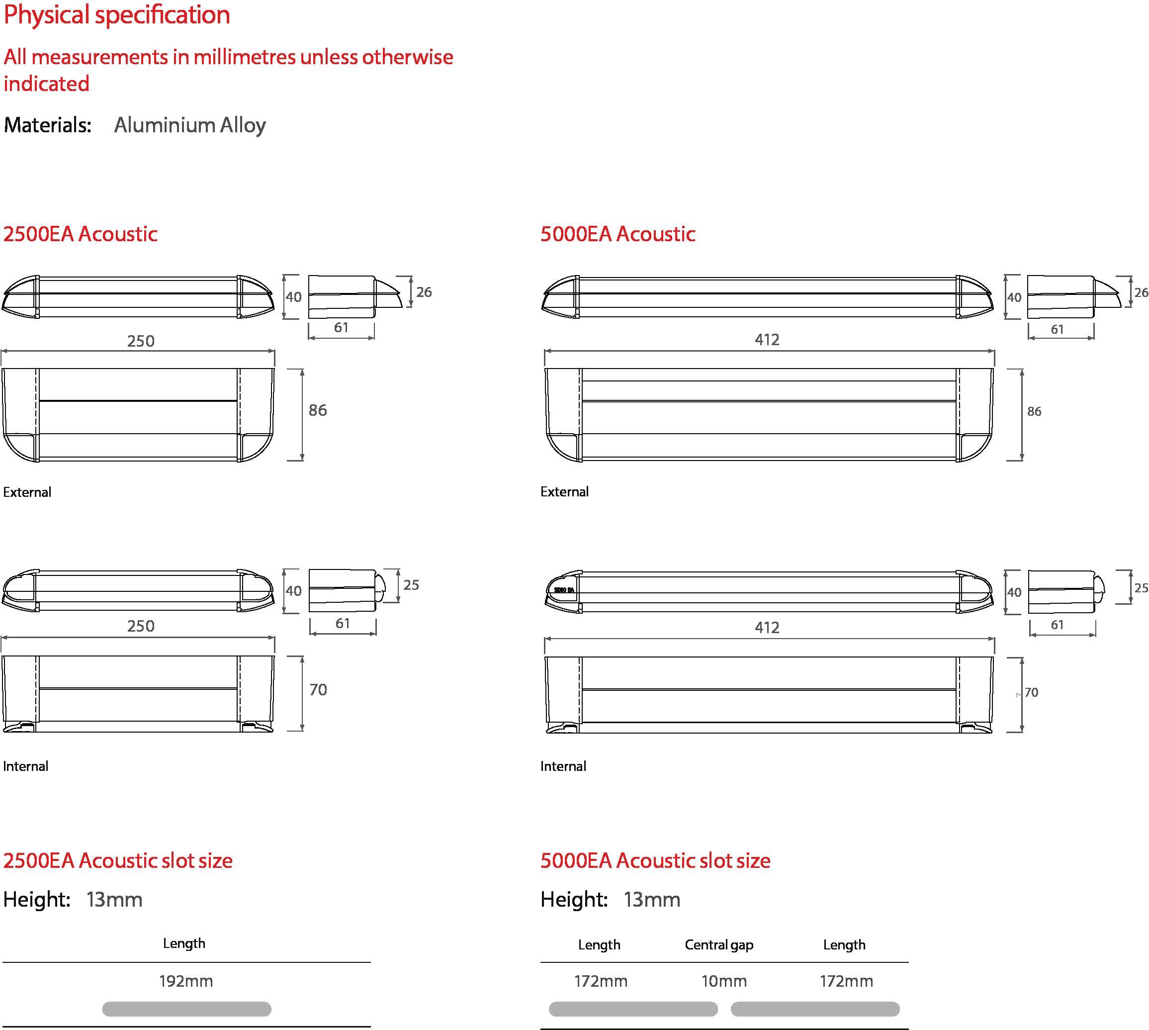 Smallest acoustic window vents providing 2500mm2 or 5000mm2 equivalent area ventilation on the market